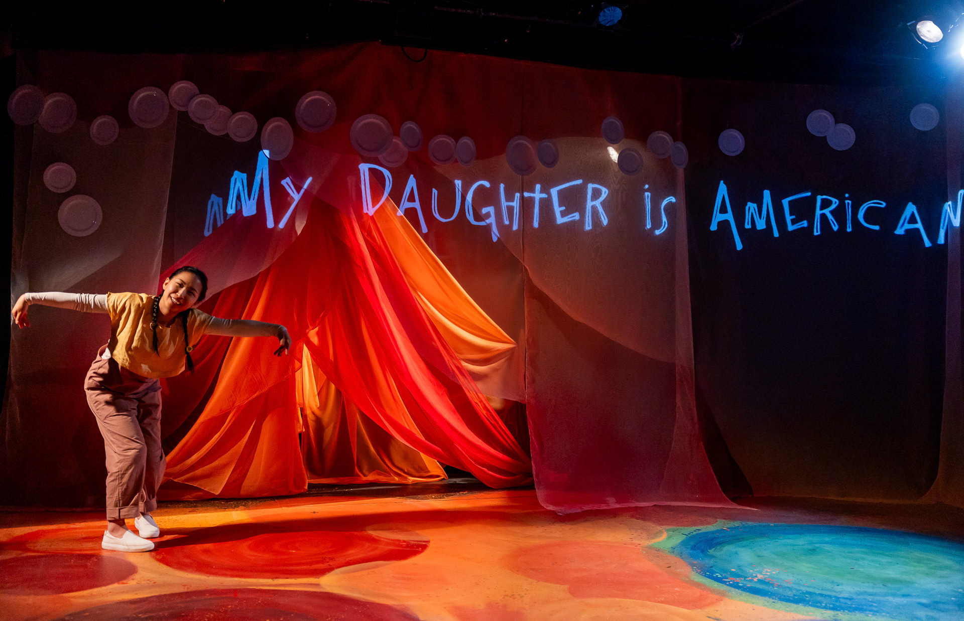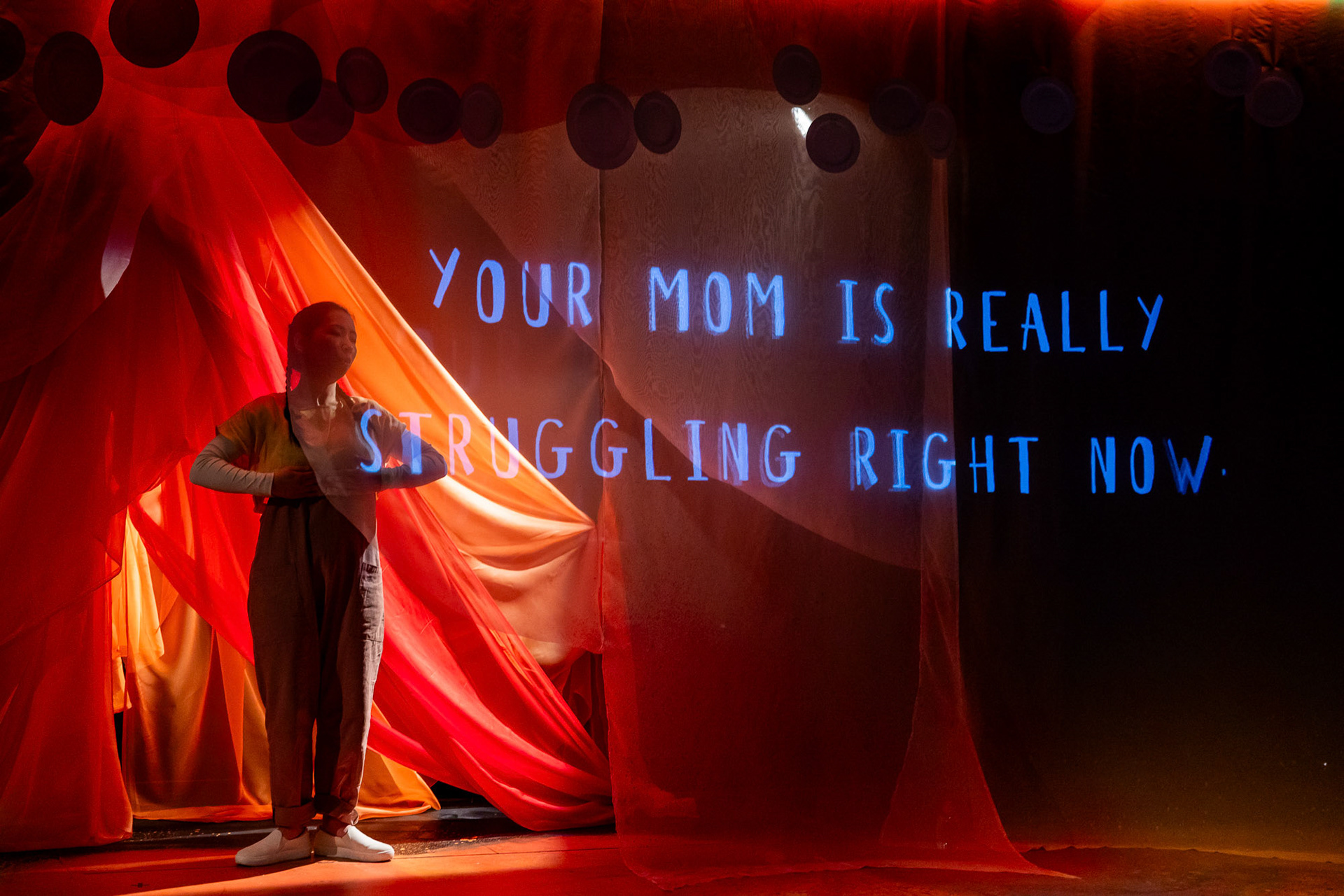 Director: Chris Yejin | Written & Performed: Zoë Kim | Set & Costume Design: Szu-Feng Chen | Lighting Design: Ari Kim | Projection Design: Michi Zaya | Sound Design: Katie Kuan-Yu Chen | Photos: Maggie Hall